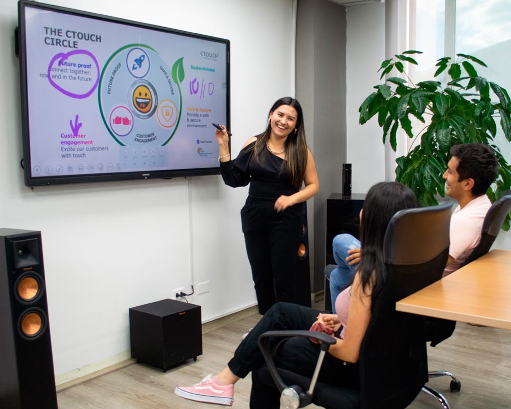En Smartco transformamos oficinas, aulas y salas de reuniones con pantallas interactivas de última generación. Equipadas con tecnología táctil precisa, videoconferencia integrada y conectividad avanzada, nuestras soluciones mejoran la productividad, simplifican las sesiones colaborativas y optimizan cada interacción profesional.